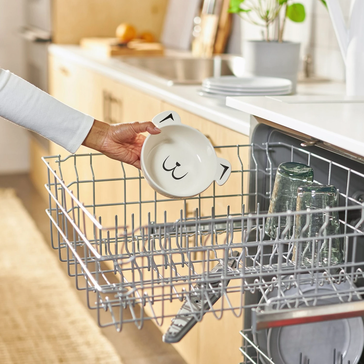 - Non-skid bottom helps keep the bowl in place to minimize tips and spills.