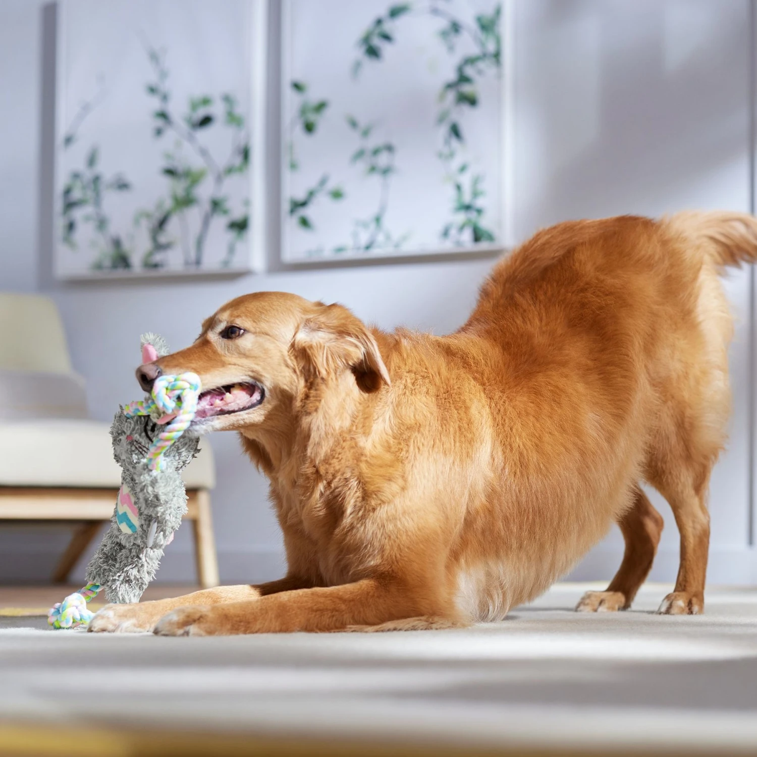 - This Easter Bunny adds rope to the standard plush toy, combining two of your pup’s favorite ways to play in one exciting toy.