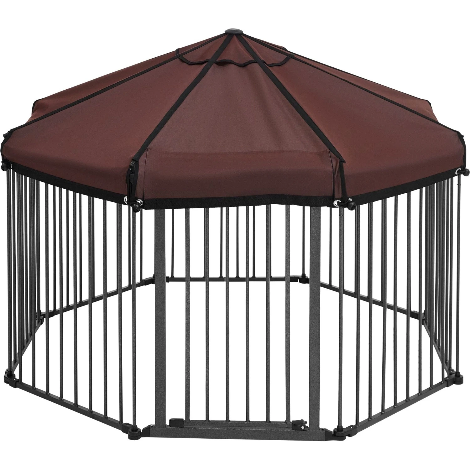 Frisco Outdoor Galvanized Steel 8-Panel Configurable Gate And Playpen With Oxford Roof