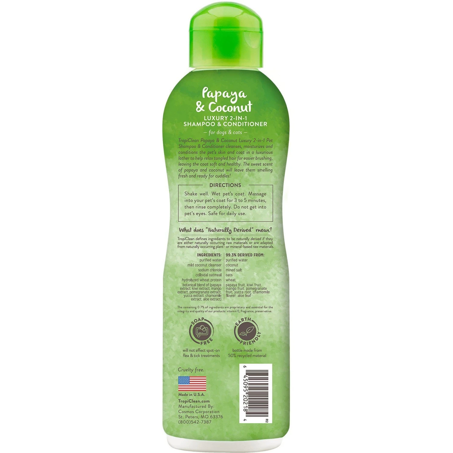 TropiClean Luxury 2 In 1 Papaya & Coconut Pet Shampoo & Conditioner & Frisco Cat & Dog Bristle Brush